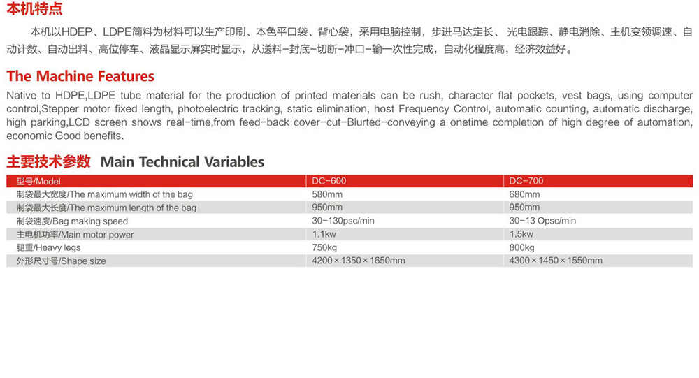 DC-600-700單道全自動背心袋制袋機