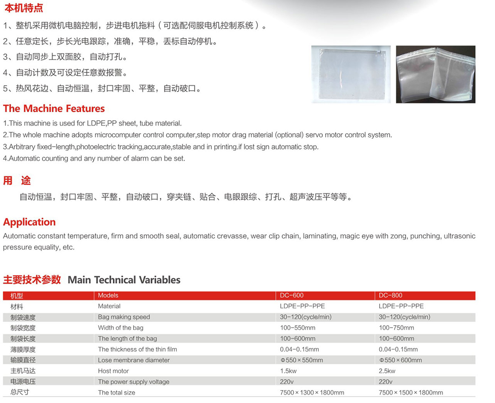 DC-600-800 multi-function zipper bonding machine